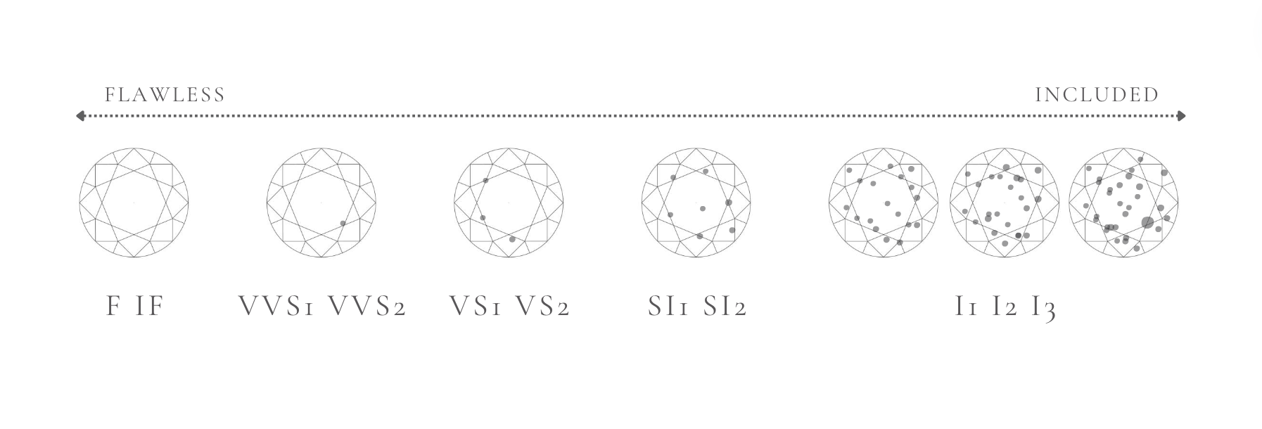 The below graphic demonstrates the scale of grading diamonds by clarity; F (for flawless) is the very best you can get and that gradually decreases.