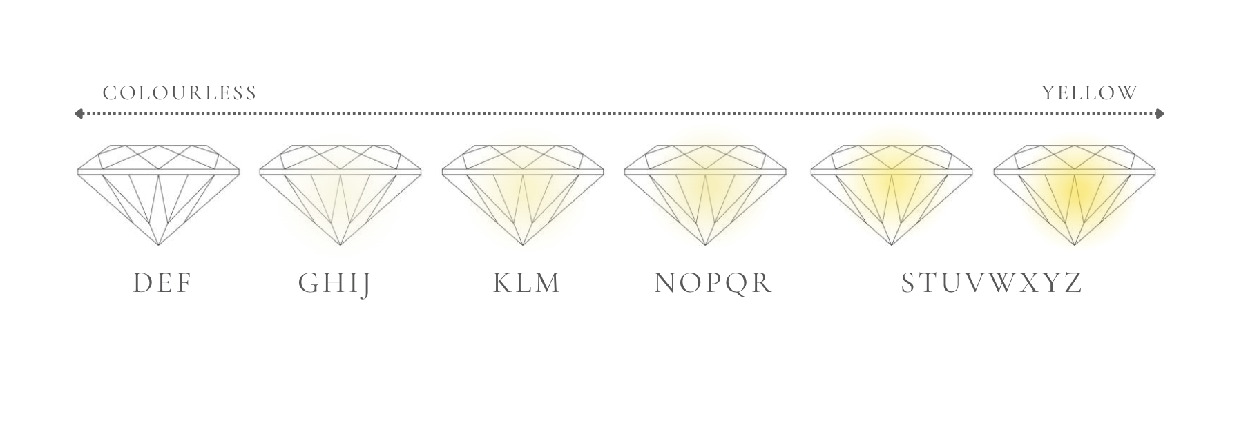 The below graphic demonstrates the scale of grading diamonds by colour; D is the very best you can get and that gradually decreases.