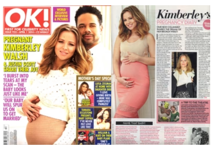 "Girls Aloud singer Kimberly Walsh wears pieces from Caroline's collection whilst talking to OK! about her pregnancy."