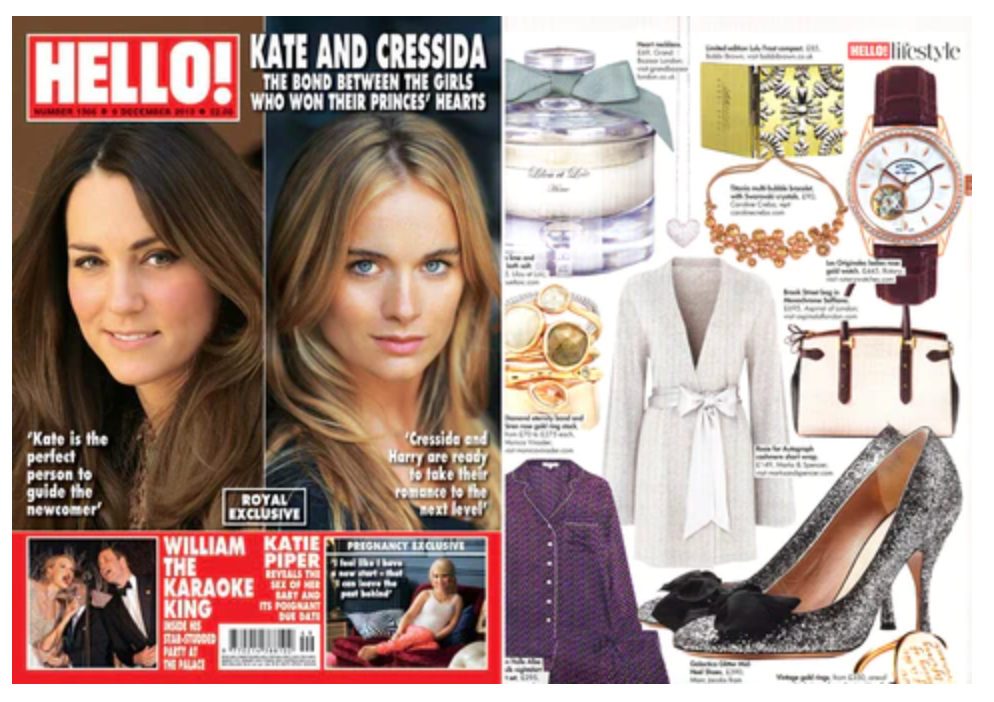 "Christmas for Her -The Titania 18ct rose gold plate friendship bracelet from Caroline Creba is featured in Hello Magazine's Christmas gift guide."