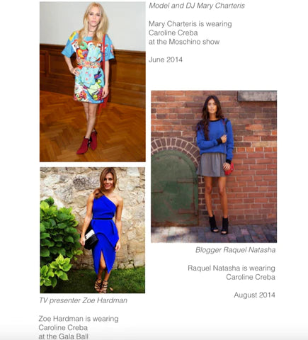 "Caroline's designs add the perfect amount of sparkle to all outfits, bringing a little black dress to life or allowing colour to be seen with serious fire and lustre."