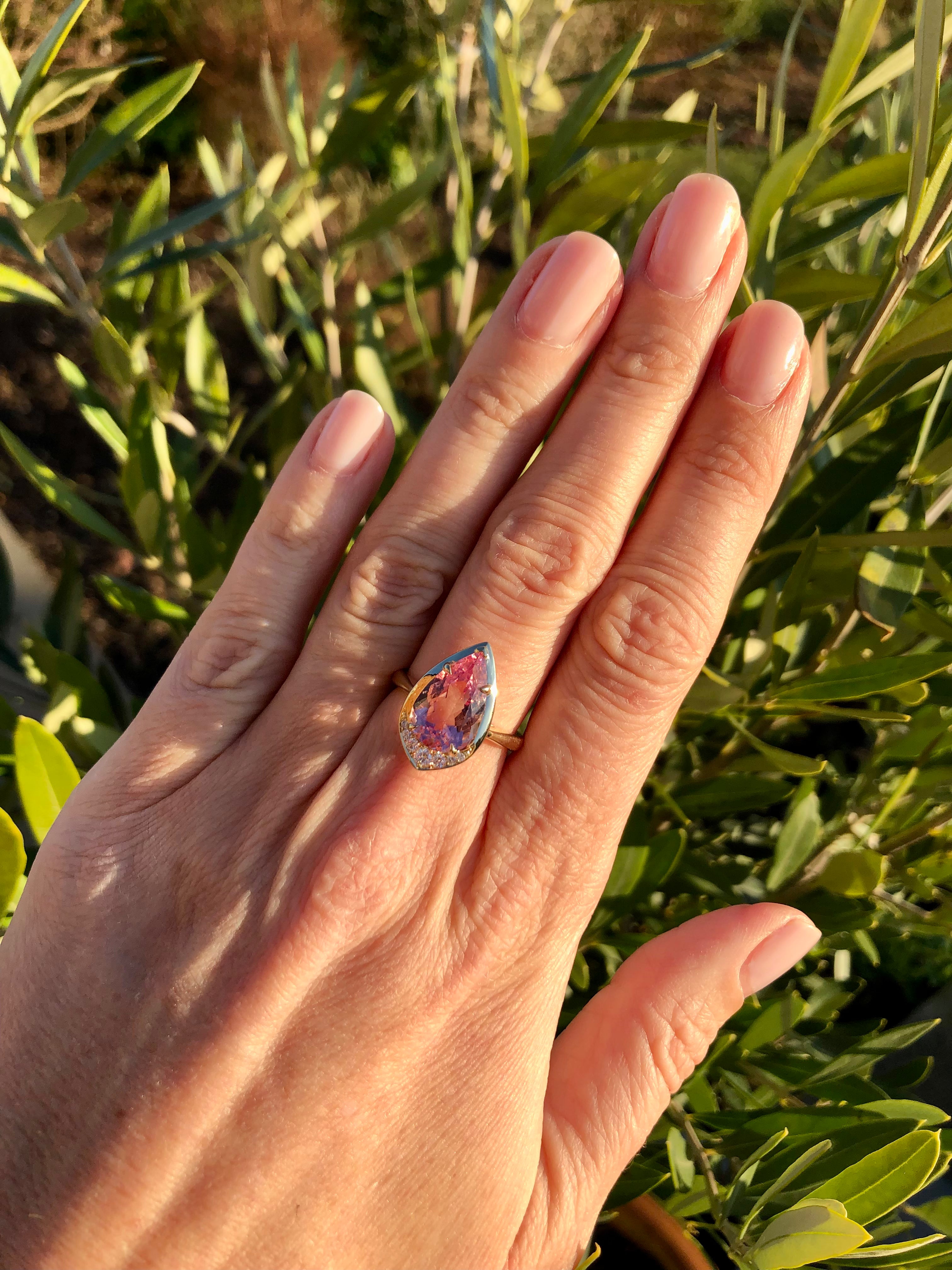 I got in touch with Caroline after receiving a beautiful pink Morganite from my parents-in-law for my 40th birthday. I knew that I wanted it set as a dazzling dress ring but as I don’t have an artistic flair or any technical jewellery knowledge, I was daunted by the process, options, decision making and costs. One meeting with Caroline and any anxieties were transformed into excitement as I relaxed into so clearly being in the hands of such a talented expert. Seeing my awkwardly expressed ideas turned into wonderful sketches as we spoke was my favourite part, but the whole process was such a delight. The finished piece is even more wonderful than I’d imagined and it gives me such pleasure to know it’s one of a kind, created with such care and attention, just for me.