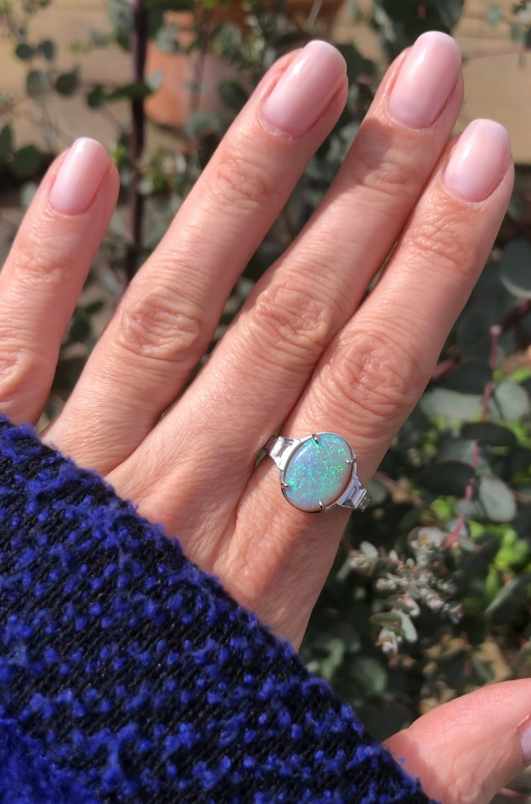 Caroline located the Opal and Diamonds I had in mind and came up with some lovely ideas for setting them…I didn’t feel rushed and she tweaked the design a few times, I was also able to try on a 3D model before giving the go ahead…the finished item is beautiful, I love it, and can’t thank Caroline enough for making my original very loose idea a reality. Thank you!